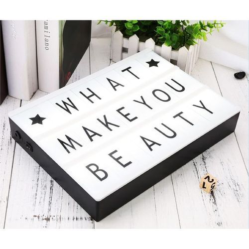 Apportez une touche d’originalité et de modernité à vos espaces avec cette boîte à lumière LED DIY au format A4. Idéale pour la décoration de votre chambre, vos fêtes, mariages, anniversaires ou pour une boutique, cette light box permet de créer des messages personnalisés en toute simplicité grâce à ses 96 lettres, chiffres et symboles inclus.