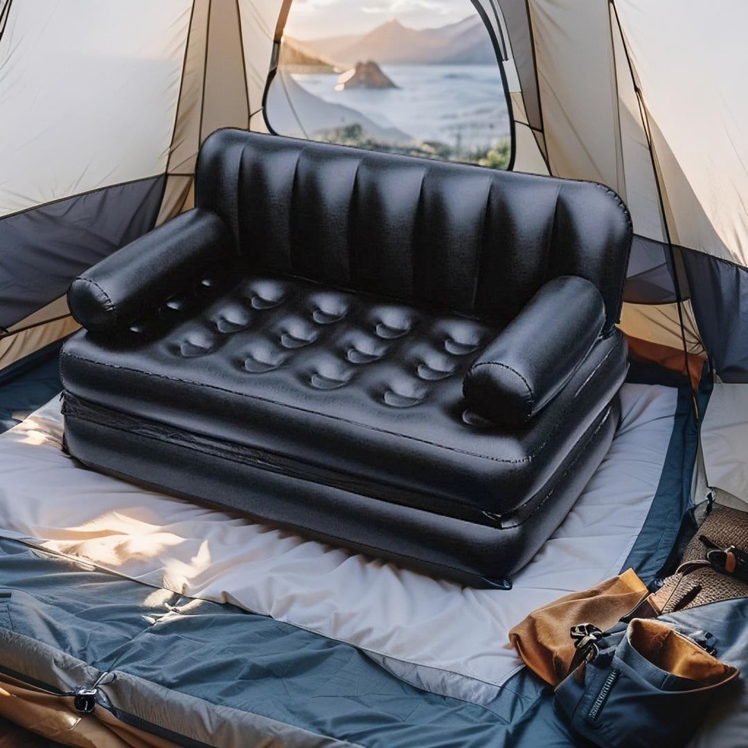 Canapé polyvalent qui offre une solution économique et confortable pour dormir dans n'importe quel coin de la maison. Rapide et facile à gonfler, ce canapé se transforme confortablement en lit queen size et peut accueillir commodément deux personnes.