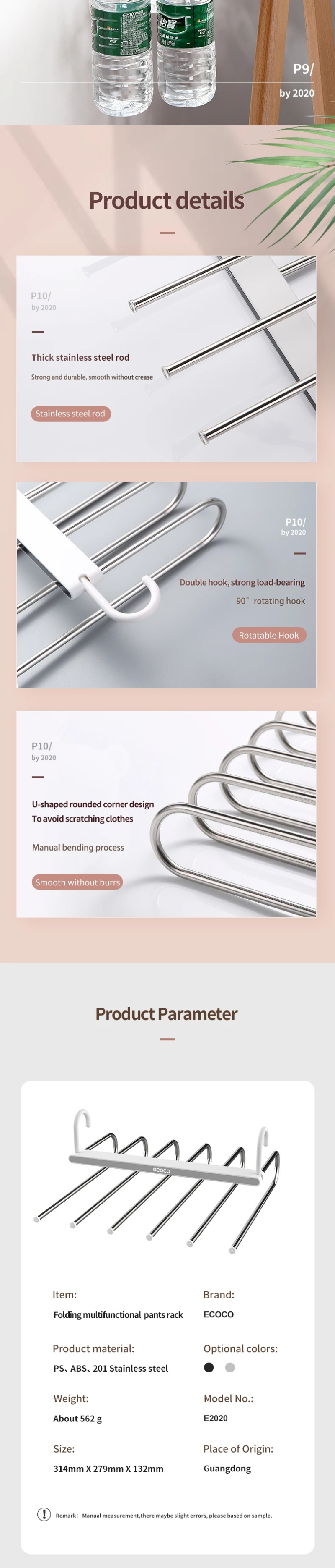 Esthétique élégante : Avec son design élégant en acier inoxydable et ses finitions soignées, l'Organiseur de Pantalons Ecoco ajoute une touche de sophistication à votre espace de rangement.