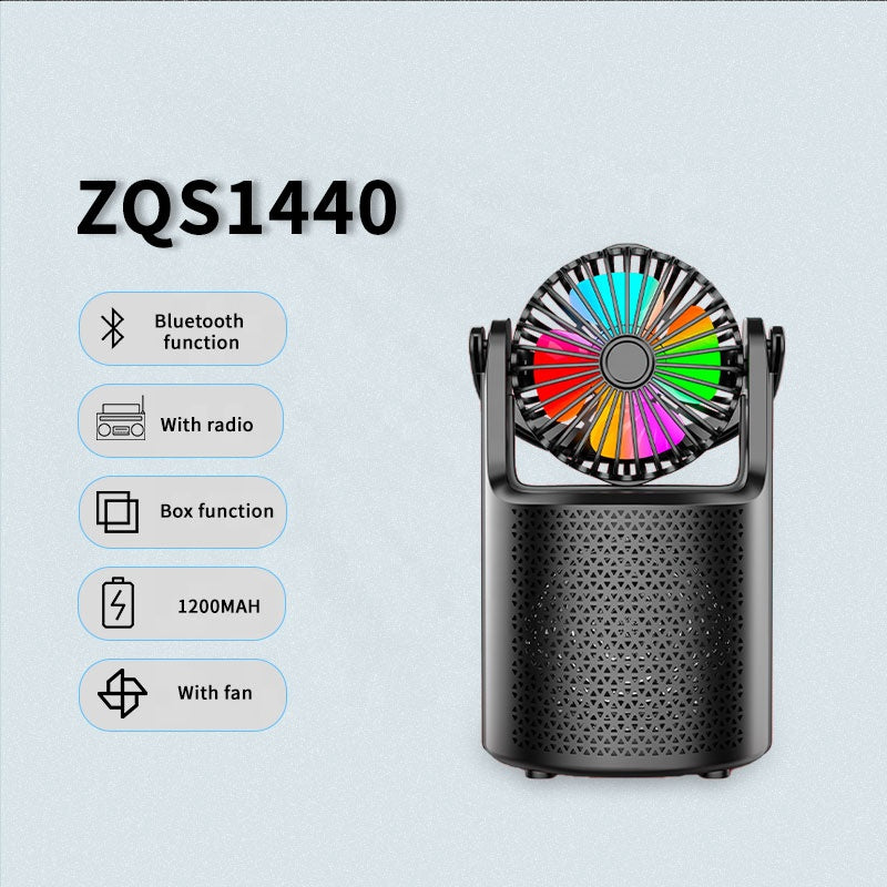 Découvrez la ZQS1440, une enceinte Bluetooth compacte et puissante avec une touche en plus : un ventilateur intégré pour vous rafraîchir en été ! Avec ses multiples options de lecture et ses lumières LED, c’est l’alliée parfaite pour vos moments en plein air.