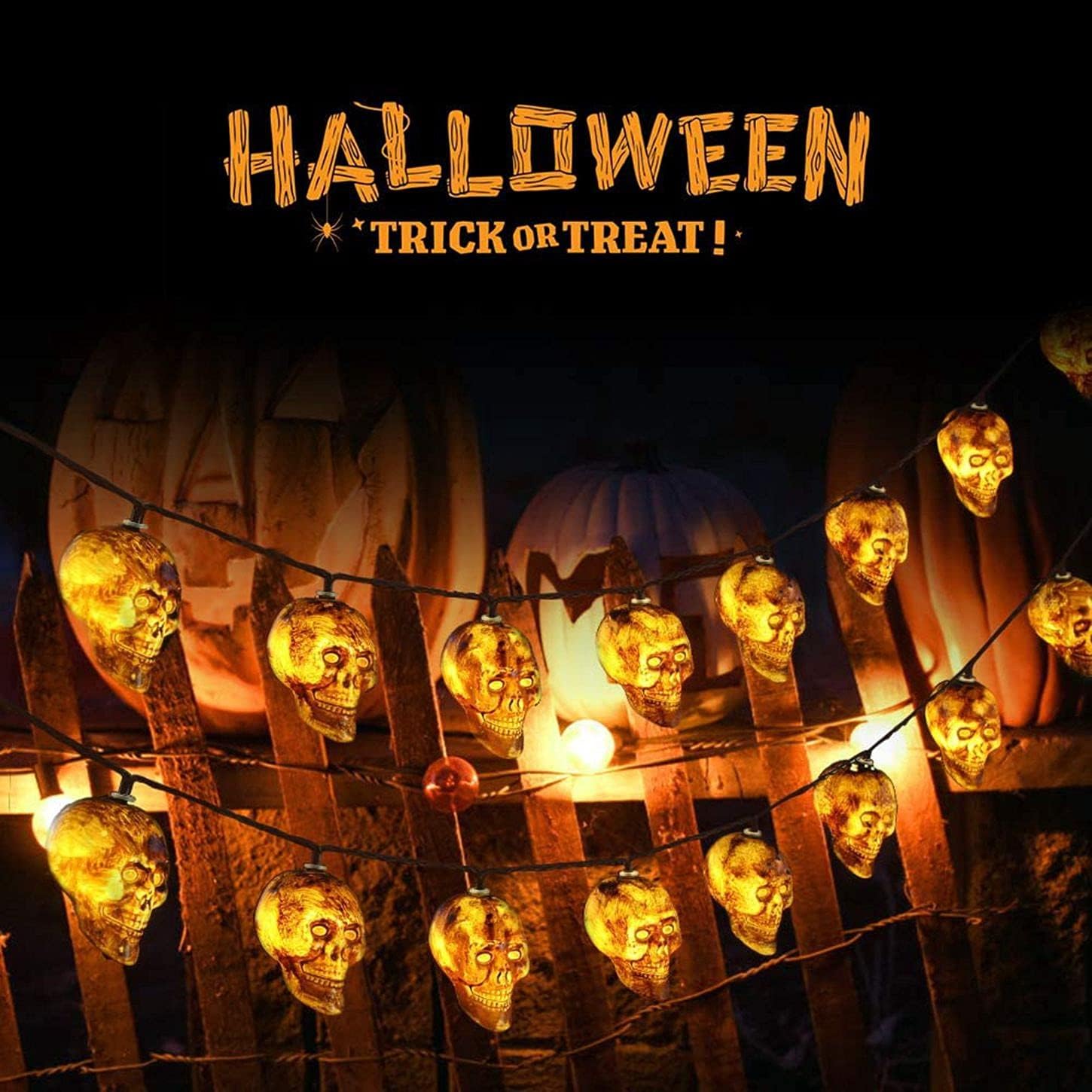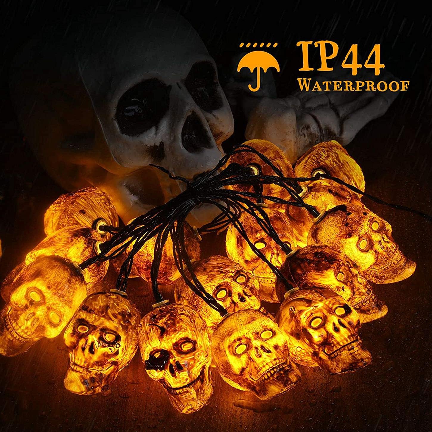 Ajoutez une touche effrayante à votre décoration d'Halloween avec nos guirlandes lumineuses en forme de tête de mort.