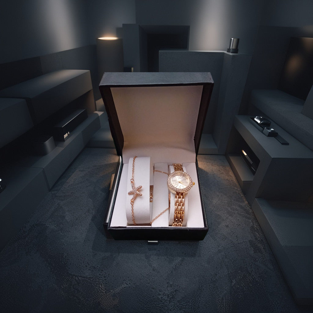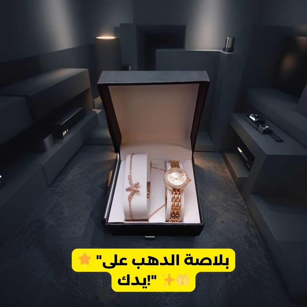 ✨ Montre et Bracelet Pour Femme – Couleur Doré en Acier Inoxydable 💛⌚