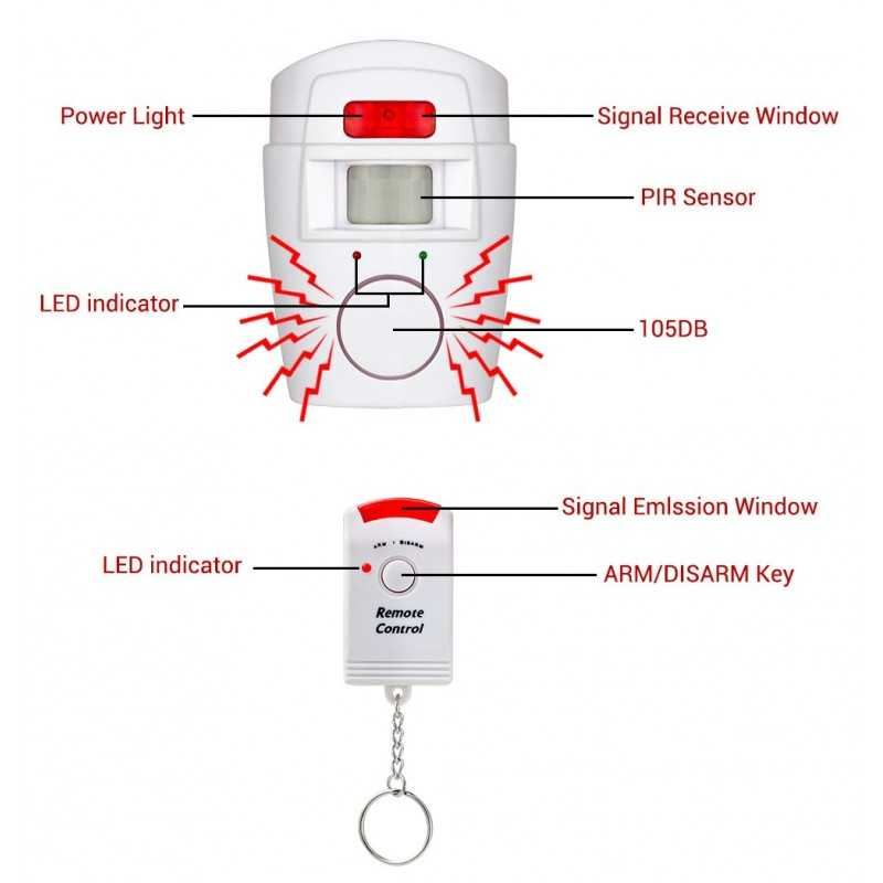 Système Alarme détecteur de mouvement avec deux télécommandes